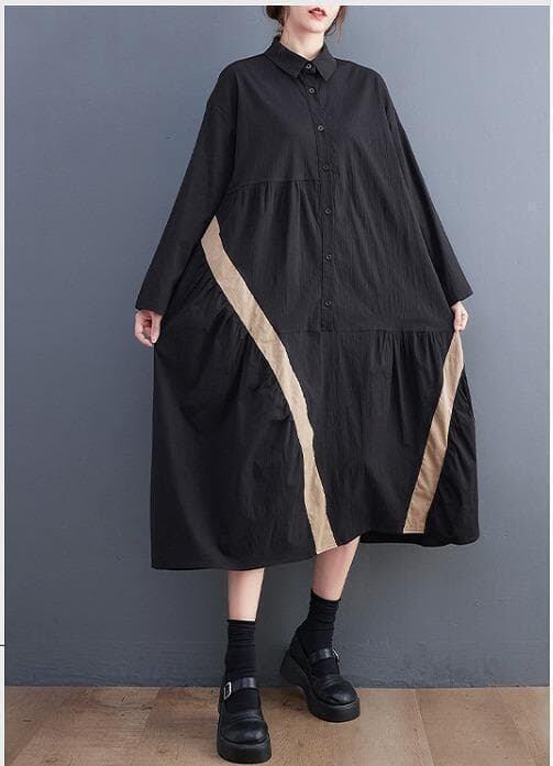 新品大きいサイズゆったりロングワンピース長袖秋冬シャツブラックレディース