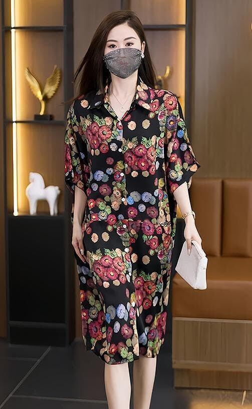 #メルカリ出品中 #大きいサイズ #ゆったり #シャツワンピース #花柄 #体型カバー #レディース #夏服 #秋服 #新品 #40代 #50代