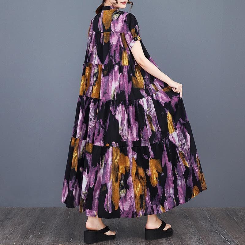 【大きいサイズ】新品 夏物ティアードワンピース 花柄 ゆったり マキシ丈 半袖