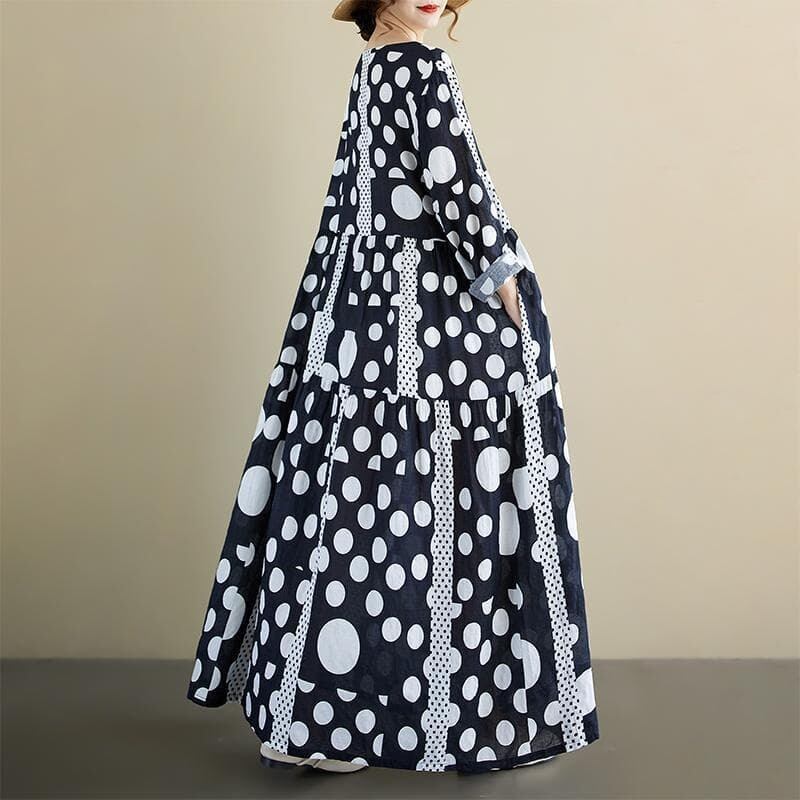 【大きいサイズ】新品 レディース ドット柄 長袖春秋ティアードワンピース ロング ゆったり マキシ丈