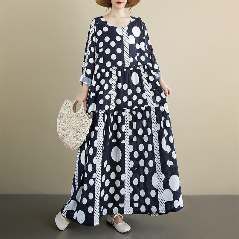 #大きいサイズ #新品 #ワンピース #ドット柄 #水玉 #ティアードワンピース #ロングワンピース #マキシ丈 #ゆったり #体型カバー #カジュアル #ボヘミアン #レディース #春服 #夏服 #秋服