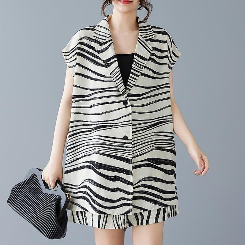 【新品】大きいサイズ夏服ゼブラ柄セットアップ 半袖ショートパンツ短パン コーデゆったり ラージ体型カバー着痩せ細見え