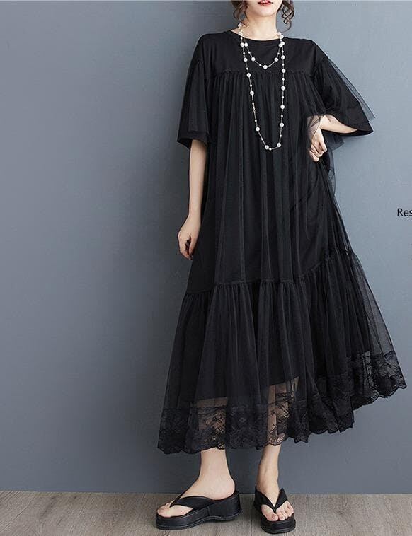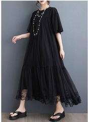 #大きいサイズ #ぽっちゃり #ワンピース #チュール #シースルー #ティアード #体型カバー #ゆったり #秋 #3L #4L #5L #新品