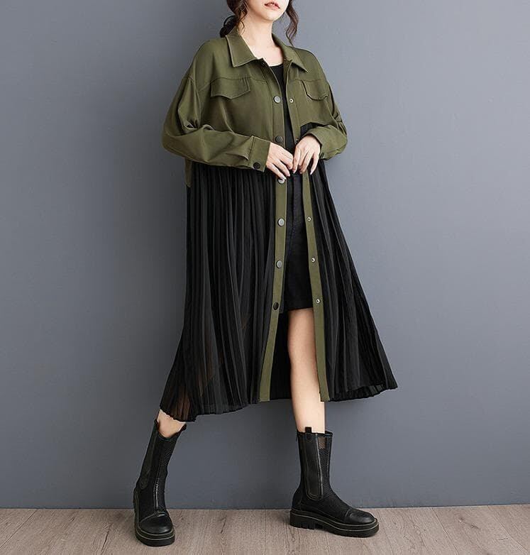 大きいサイズ プリーツ ワンピース レディース チュニック 秋冬 春 長袖 新品 シャツ カーキ