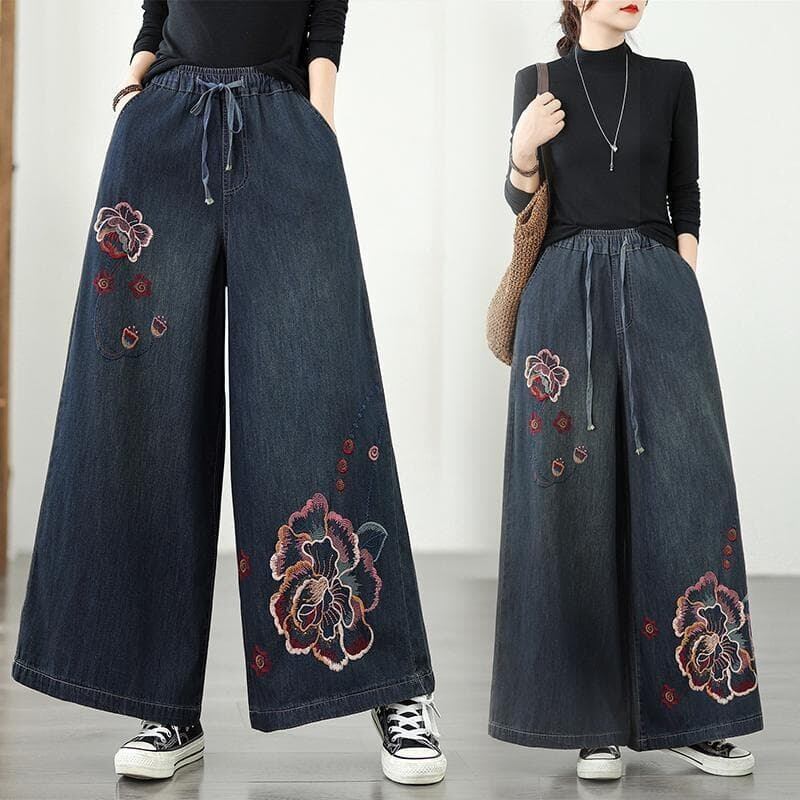#新品 #大きいサイズ #3L #XXL #デニムワイドパンツ #刺繍 #中国風 #レトロ #ゆったり #オールシーズン #レディース #ジーパン #バギーパンツ #ハイウエスト