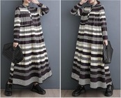 #ワンピース #ロングワンピース #大きいサイズ #ゆったり #Aライン #秋 #春 #黒 #プリント #レトロ