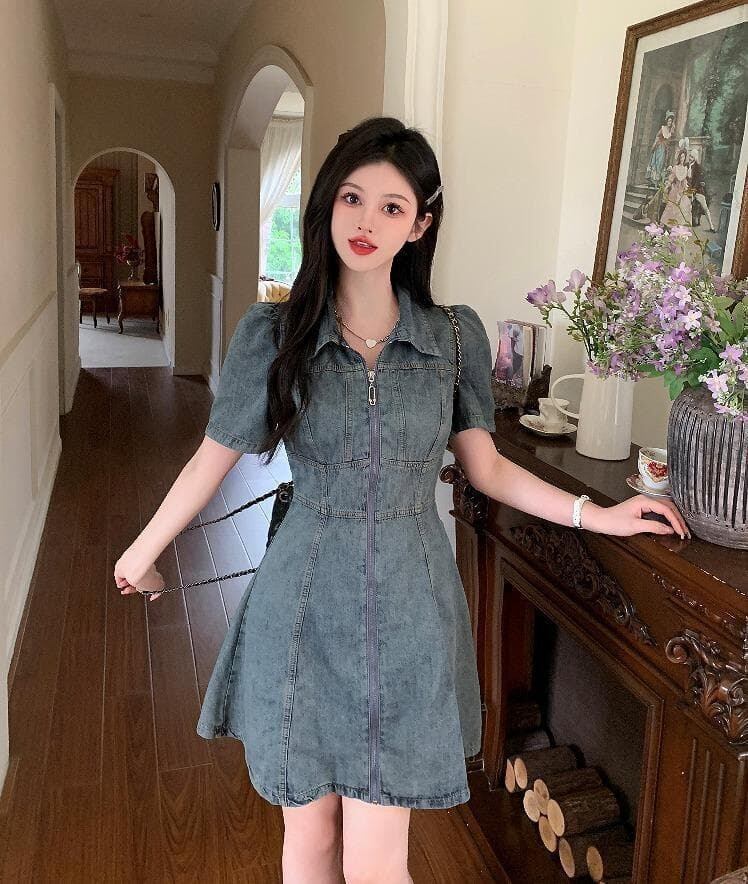 大きいサイズ レディース デニム ワンピース 春夏 秋 新品 半袖