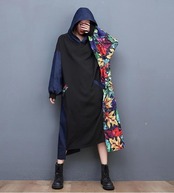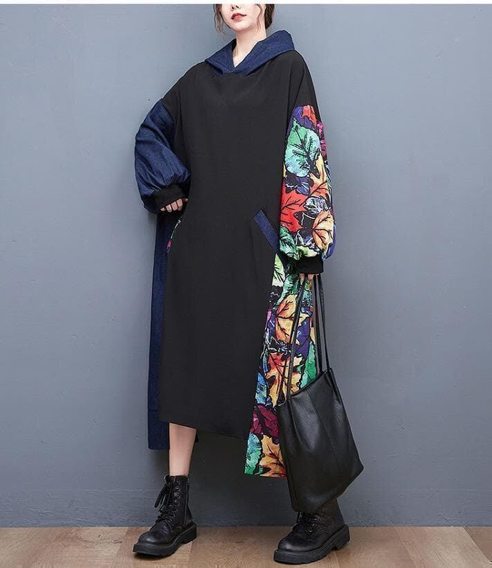 新品大きいサイズ韓国風 プルオーバー長袖パーカーフード付秋冬ロングワンピース