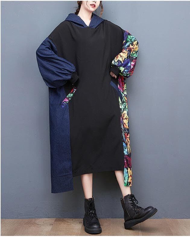新品大きいサイズ韓国風 プルオーバー長袖パーカーフード付秋冬ロングワンピースw
