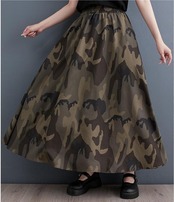 新品 大きいサイズ迷彩柄 Aライン ロングスカート ゆったり マキシ丈夏秋