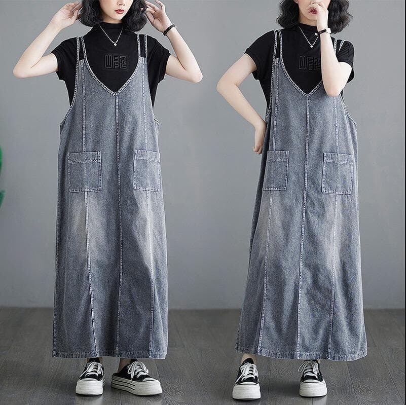 大きいサイズ レディース ワンピース サロペット ロング 春夏 秋 新品 デニム キャミ