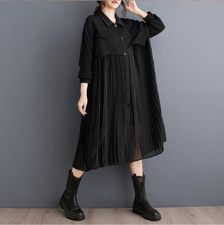 大きいサイズ プリーツ ワンピース レディース チュニック 秋冬 春 長袖j
