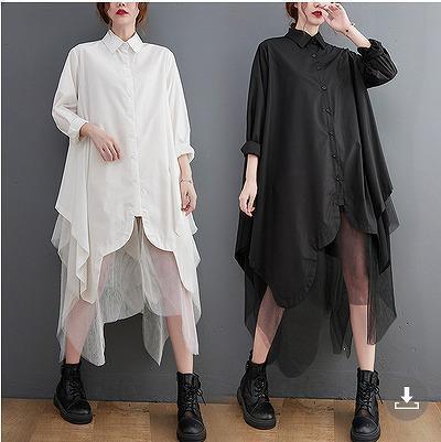 大きいサイズ レディース 秋冬 シャツ ワンピース アシメ 長袖