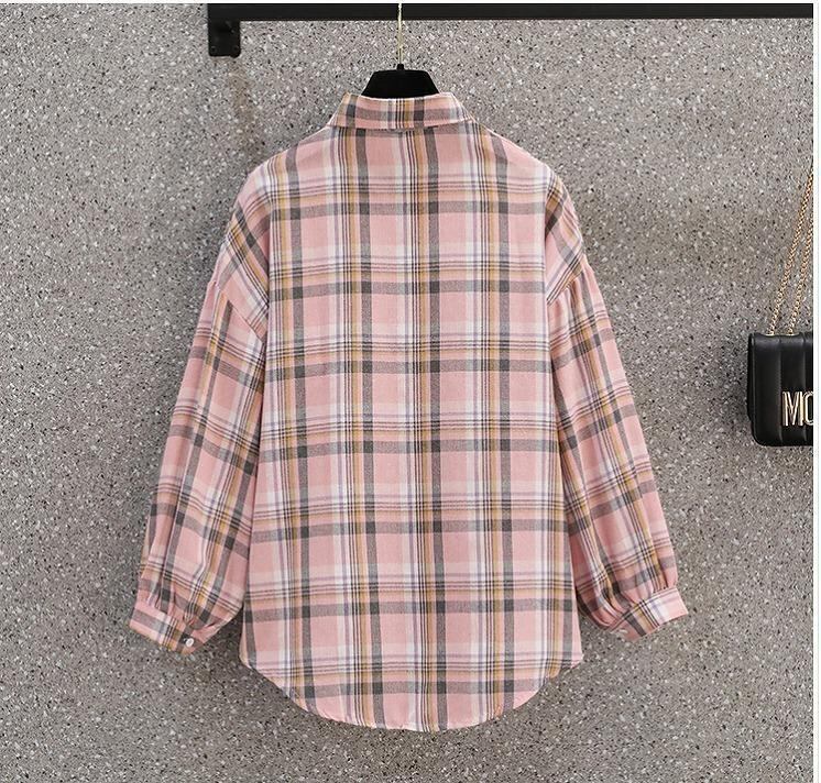 大きいサイズ レディース 秋冬 トップス シャツ チェック柄 長袖 ピンク