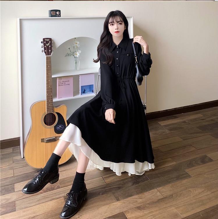 大きいサイズ レディース ワンピース モノトーン 春 秋冬 新品 長袖