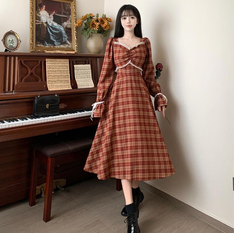 大きいサイズ レディース ワンピース チェック柄 春 秋冬 新品 長袖