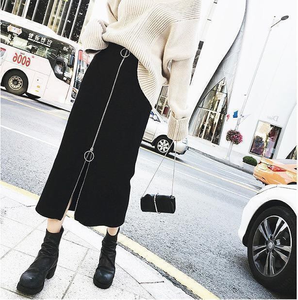 「長めのタイトスカートが合わせやすい♪スリット長さは自由自在」