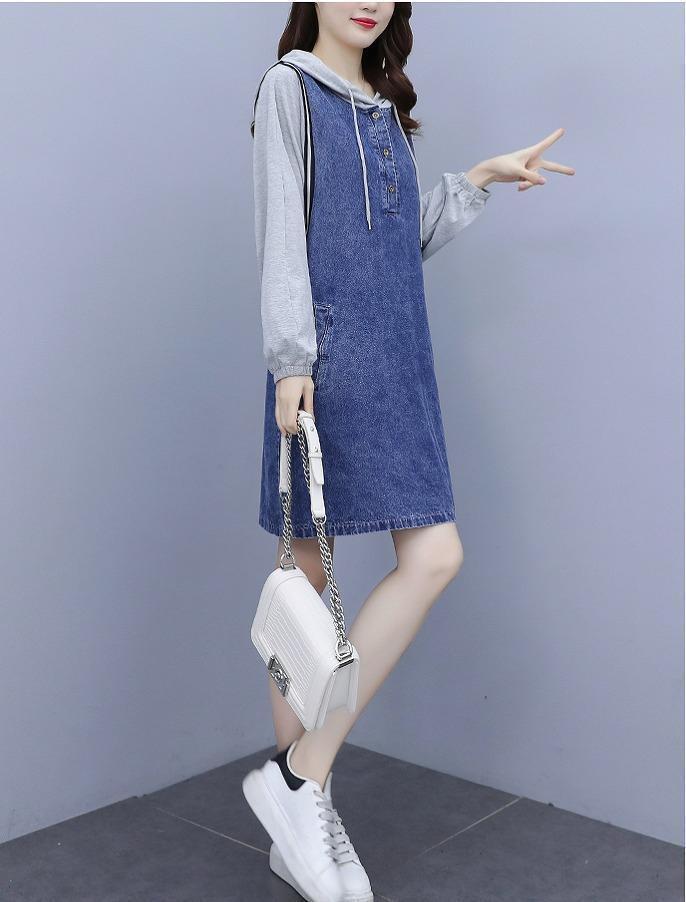大きいサイズ レディース 秋冬 パーカー ワンピース フーディ 異素材 重ね着風 長袖