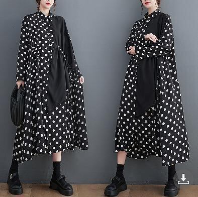 大きいサイズ レディース 秋 冬 ワンピース ドット柄 新品 長袖 春