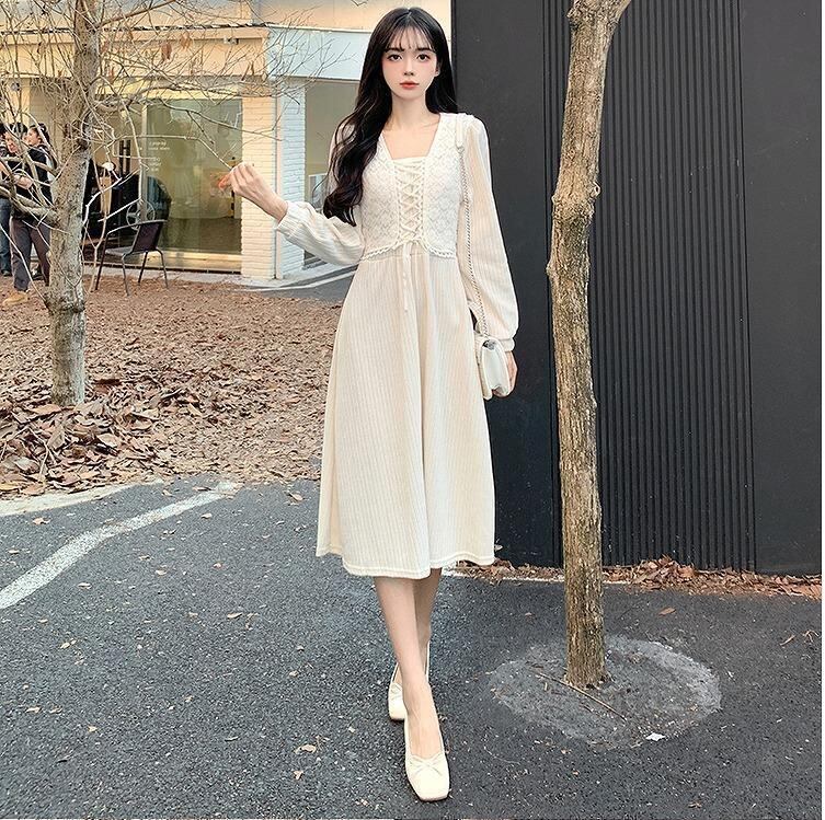 大きいサイズ レディース 秋 冬 ワンピース 白 清楚 新品 長袖 春