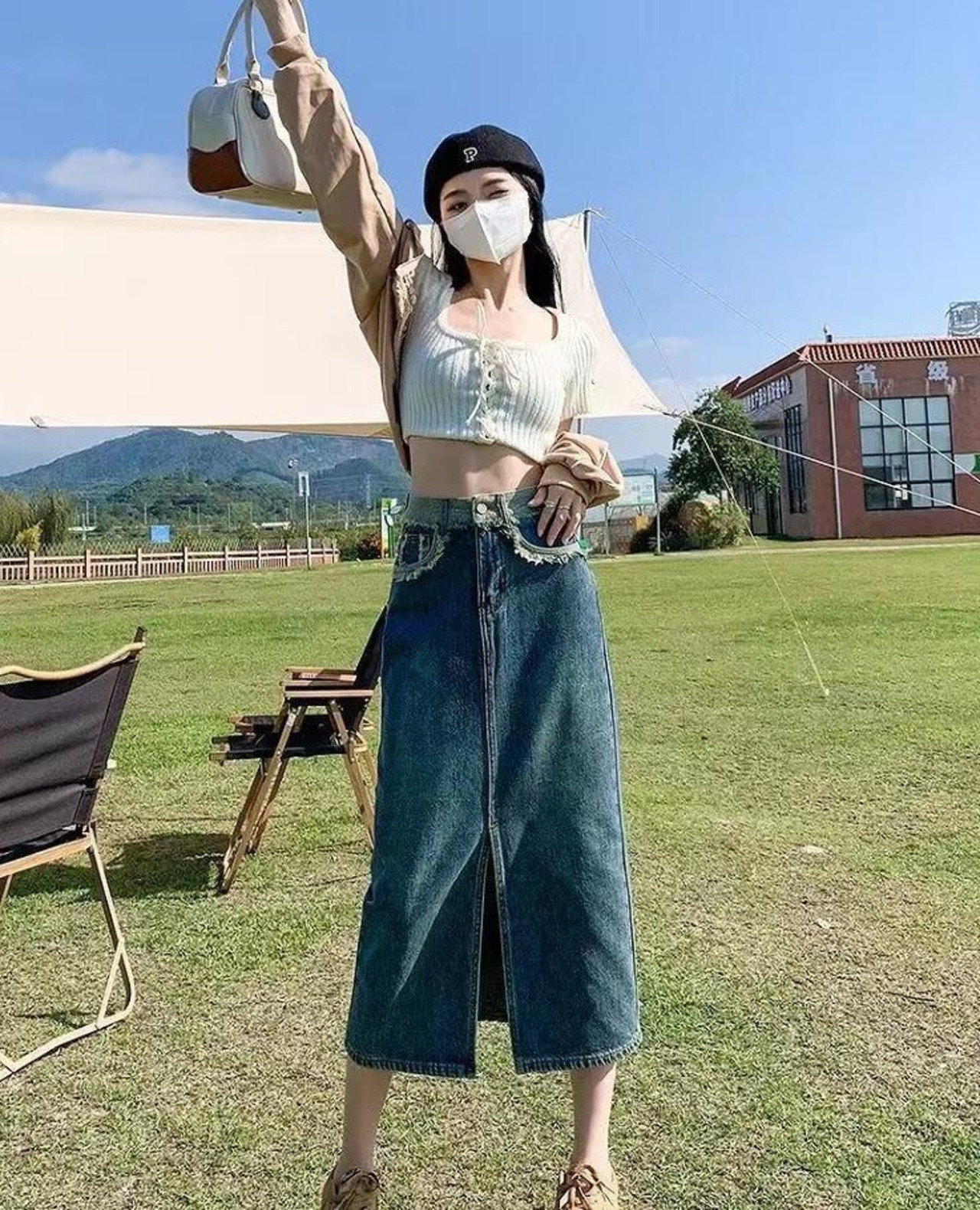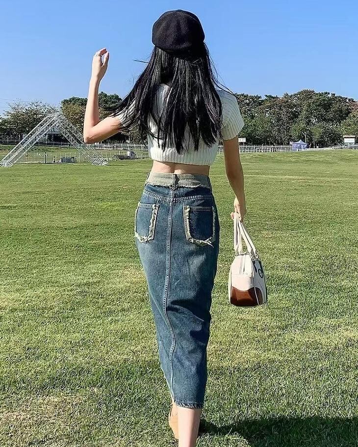 大きいサイズ レディース デニム スカート ミモレ 新品