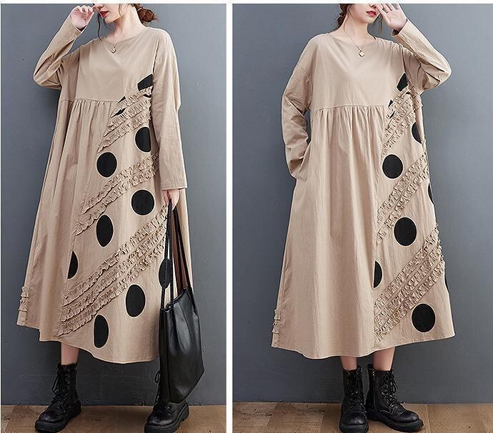 大きいサイズ レディース 秋 冬 ロング ワンピース ドット 新品 長袖 春