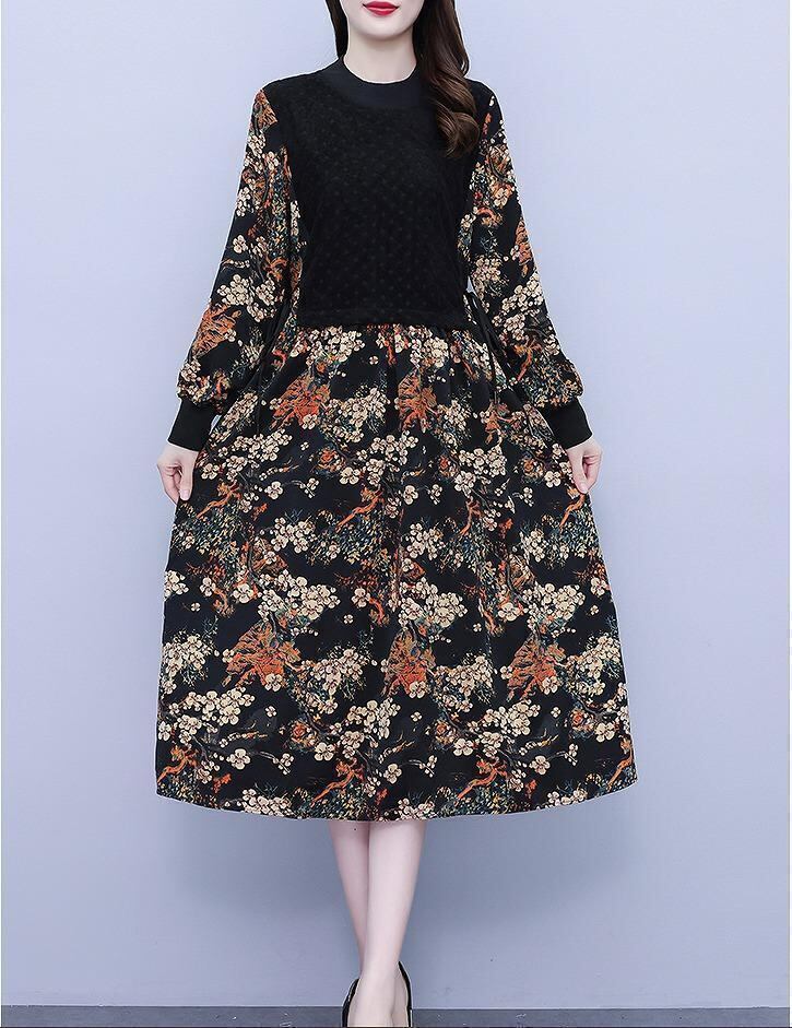大きいサイズ レディース 秋 冬 花柄 ワンピース 新品 長袖 春