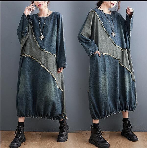 大きいサイズ レディース 秋 冬 ワンピース 重ね着風 新品 長袖 春