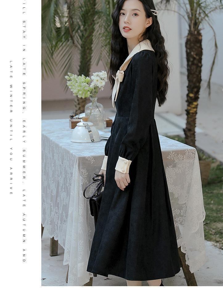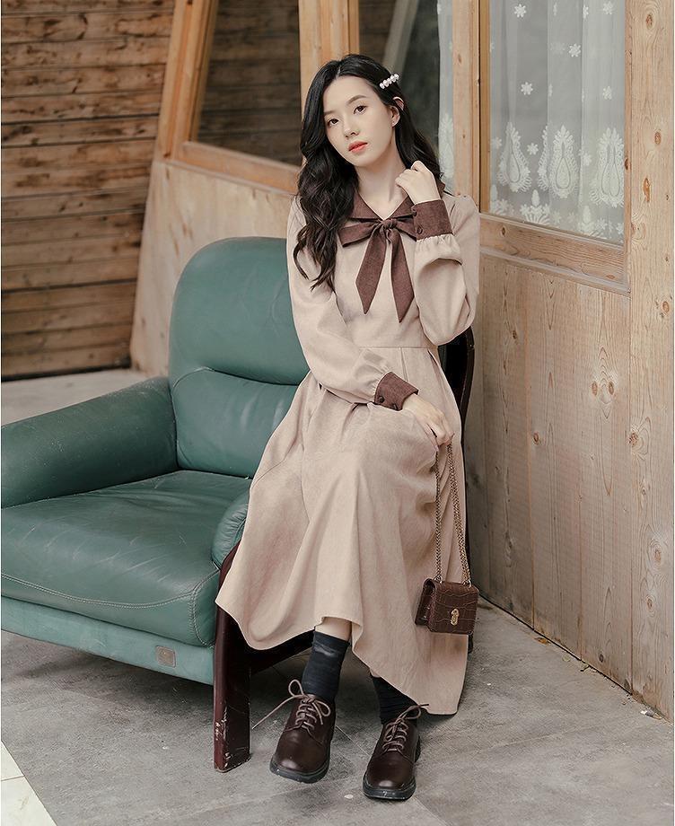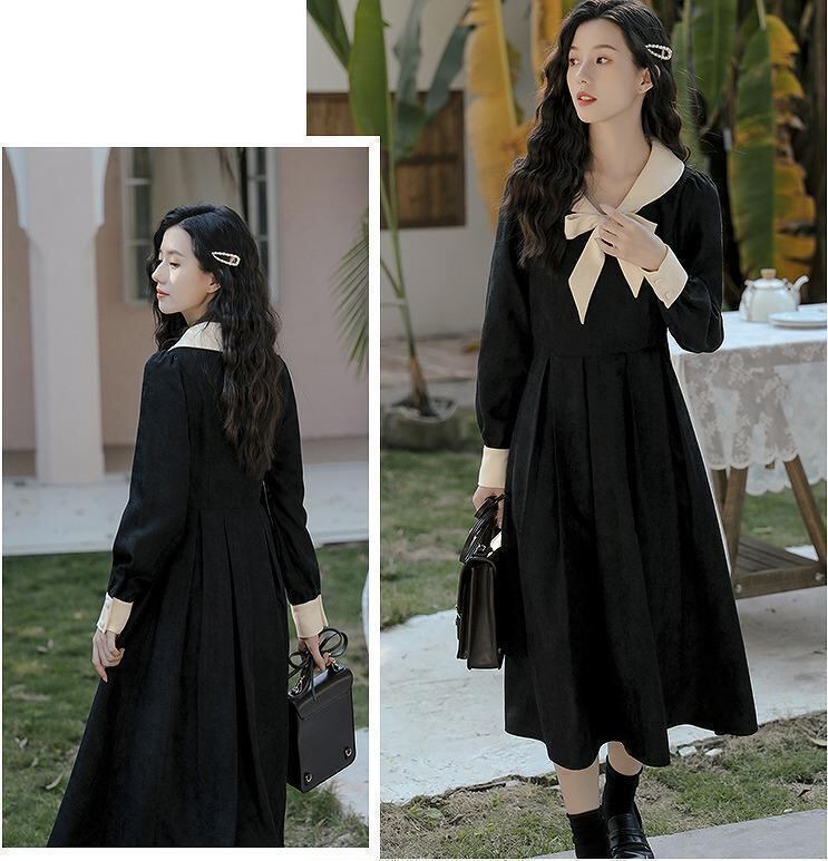 【ラス1】大きいサイズ レディース 秋冬 ワンピース リボン 長袖 春物