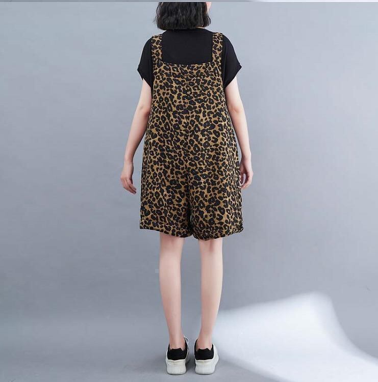 大いサイズ レディース サロペット パンツ ヒョウ柄 新品 ハーフパンツ