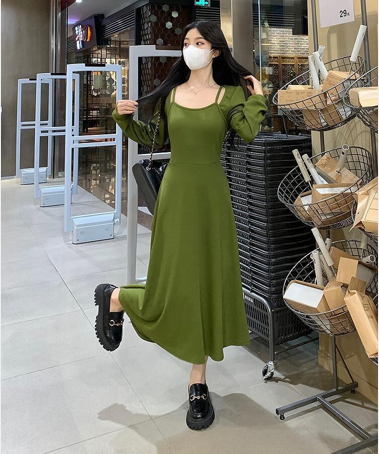 大きいサイズ レディース ワンピース 重ね着風 春 秋冬 新品 長袖