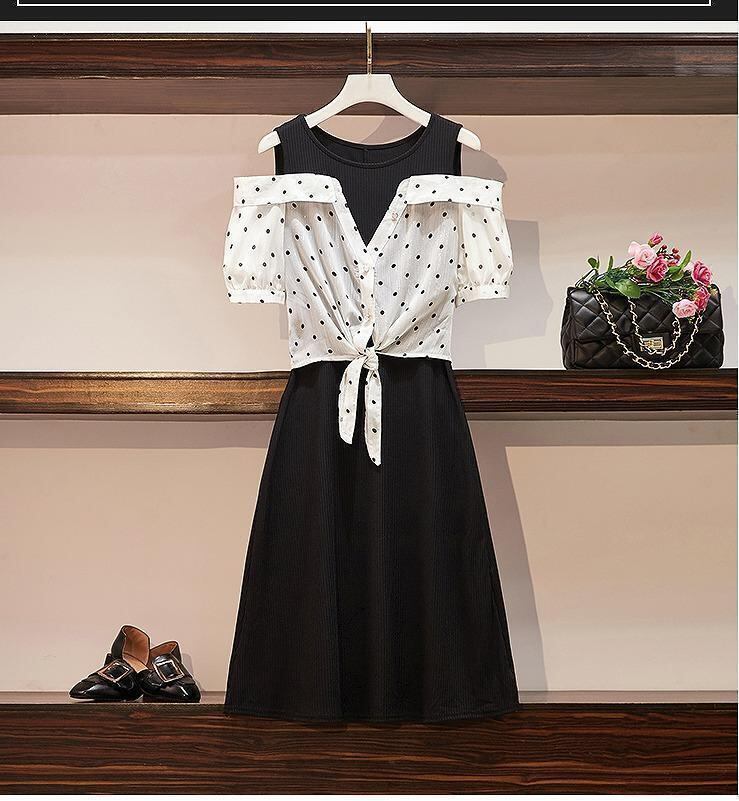 大きいサイズ レディース 重ね着風 ワンピース 半袖 五分袖 春夏 肩出し
