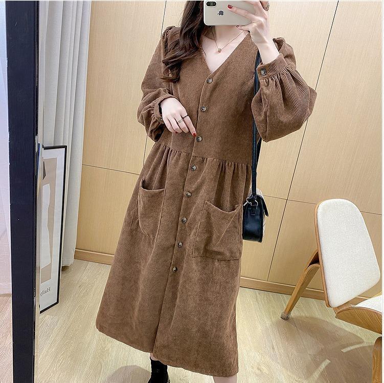 【大きいサイズ レディース】秋冬 ワンピース ロング 長袖 Vネック