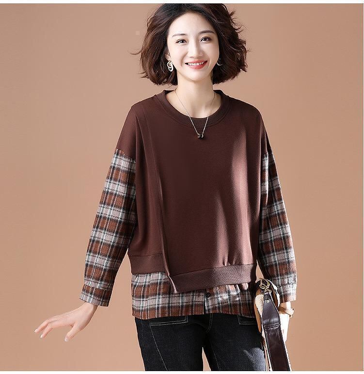 大きいサイズ レディース 春 秋 冬 長袖 チェック柄トップス