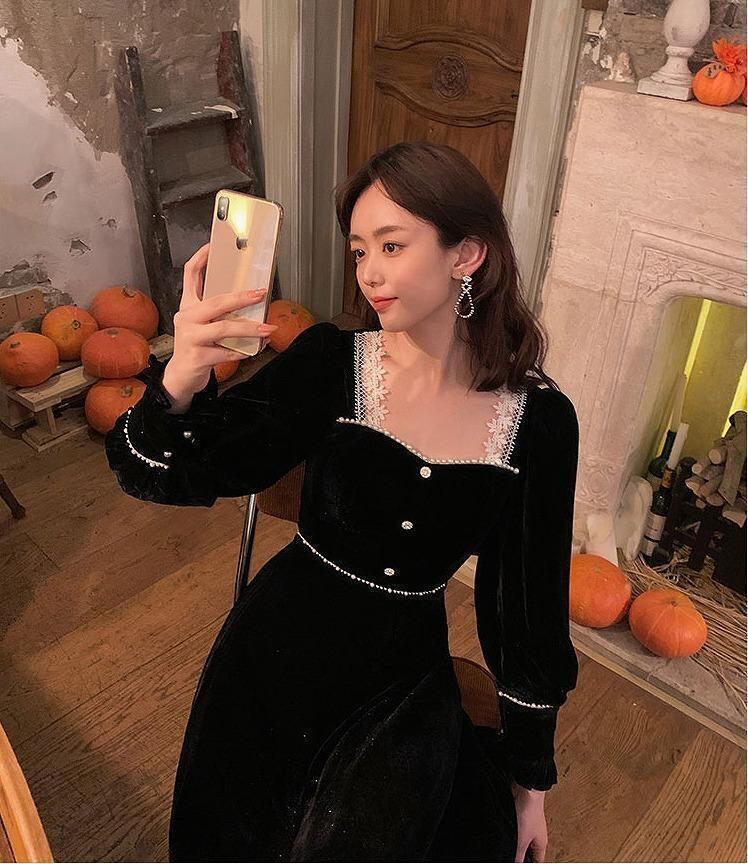 【大きいサイズ レディース】秋冬 スクエアネック ワンピース ブラック