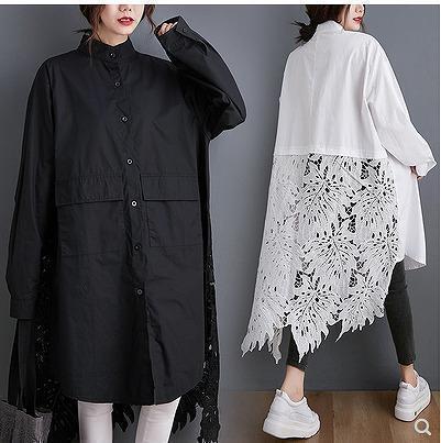 大きいサイズ レディース バックレース ロングシャツ トップス 長袖 春 秋 冬