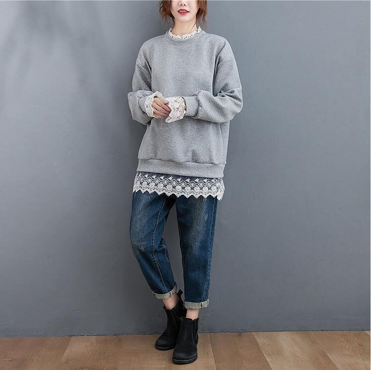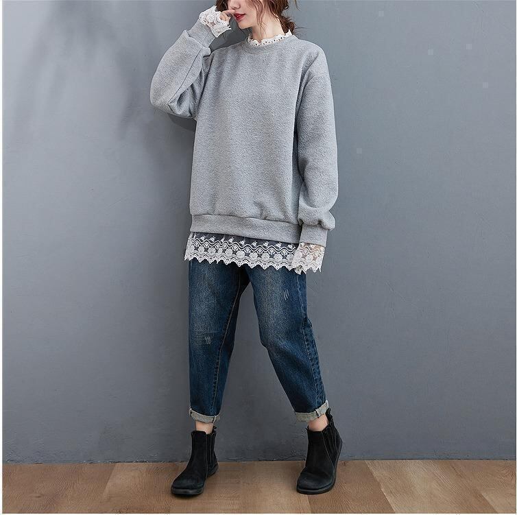 【大きいサイズ レディース】秋冬 レース袖・裾 トレーナー
