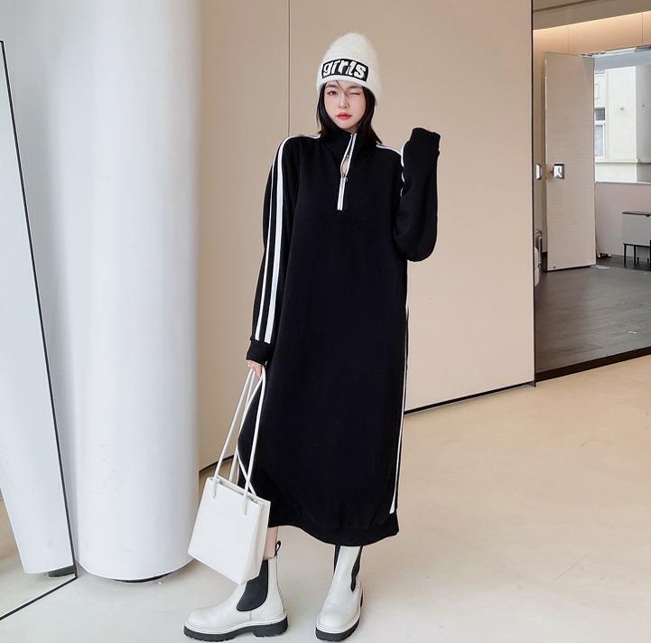 大きいサイズ レディース 秋冬 ハーフジップ ワンピース スポーティ ロング ライン 長袖