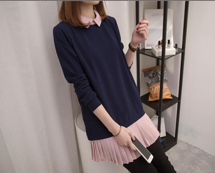 大きいサイズ レディース 秋冬 重ね着風トップス プリーツ レイヤード 長袖