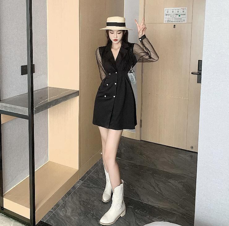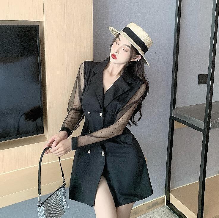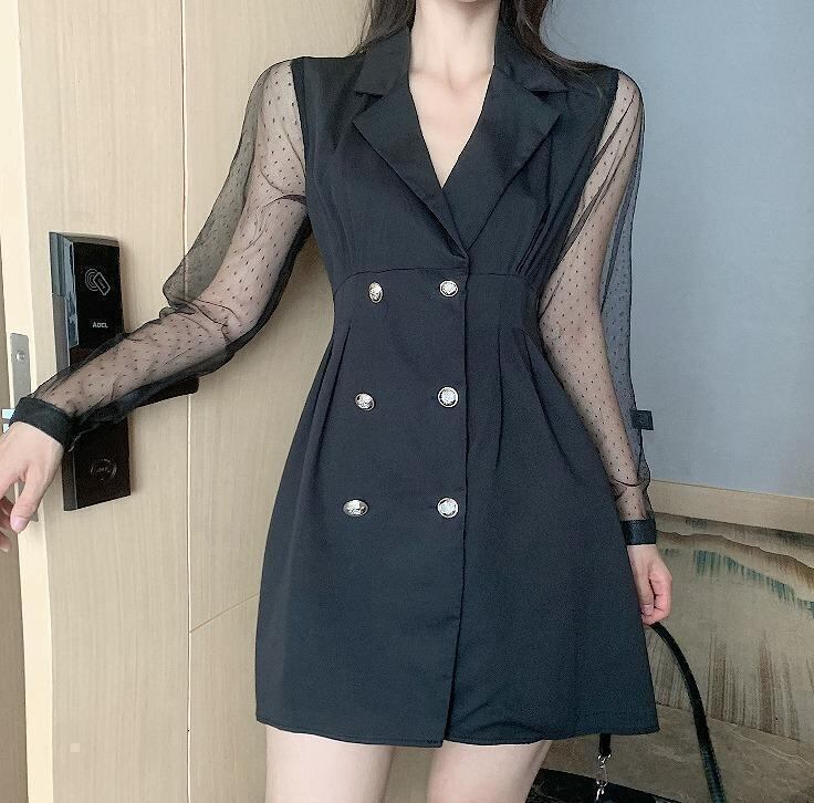 大きいサイズ レディース 秋冬 ジャケット風 ワンピース シースルー袖