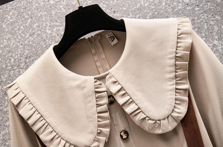 【6】大きいサイズ レディース 秋冬 襟付き ワンピース 重ね着風