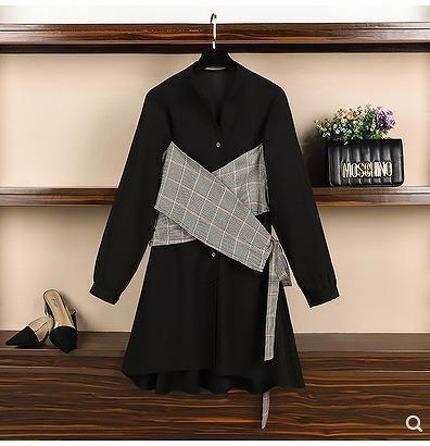 大きいサイズ レディース 秋冬 ワンピース グレンチェック柄 長袖