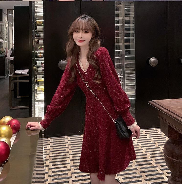 大きいサイズ レディース 秋冬 ワンピース 長袖 赤