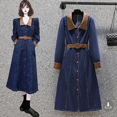 大きいサイズ レディース デニム ワンピース 長袖