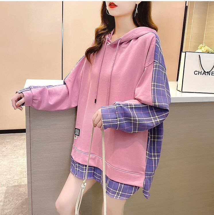 大きいサイズ レディース パーカー トップス レイヤード オーバーサイズ 春 チェック柄 長袖