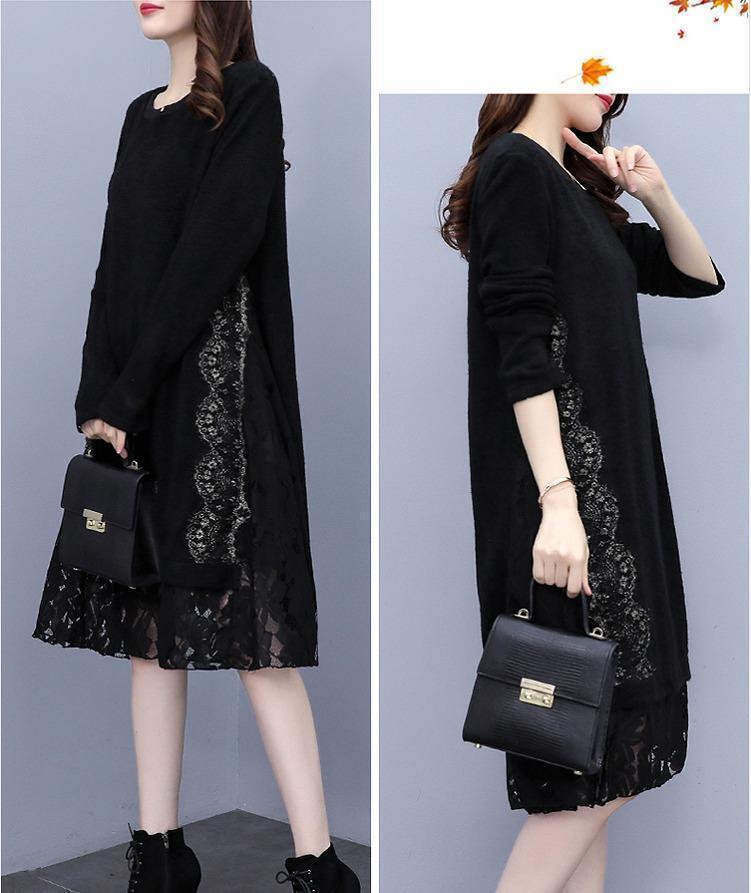 大きいサイズ レディース 秋冬 裏起毛 ワンピース レース