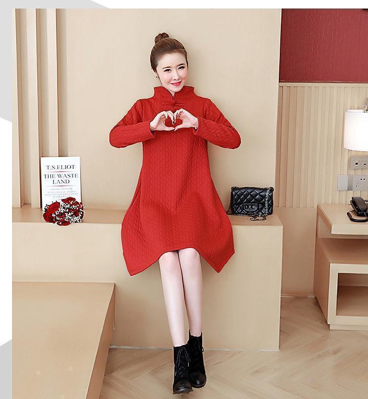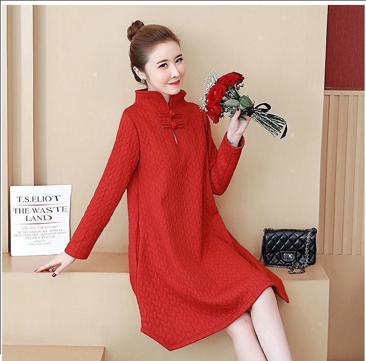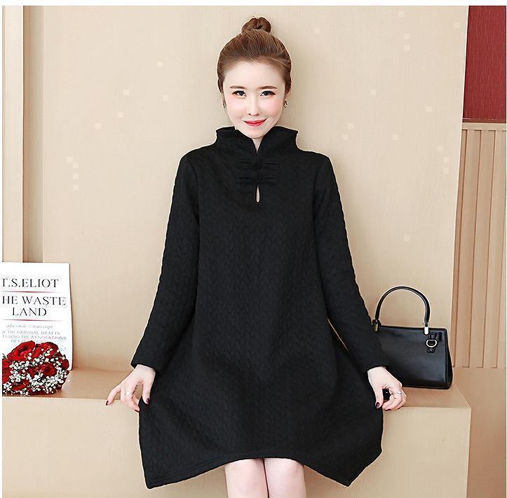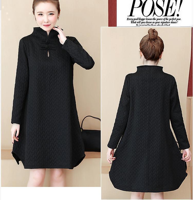 【大きいサイズ レディース】秋冬 裏起毛 ワンピース