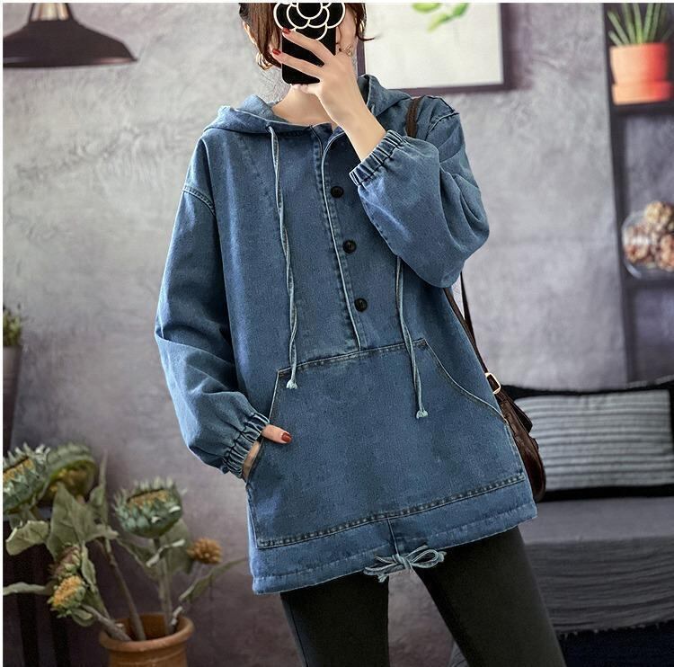 【大きいサイズ レディース】秋冬 デニム パーカー トップス フード付き