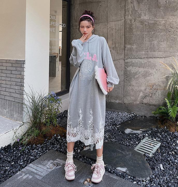 大きいサイズ レディース 秋 冬 パーカー ワンピース 新品 長袖 春