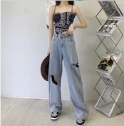 大きいサイズ レディース ダメージ デニムパンツ こなれ感